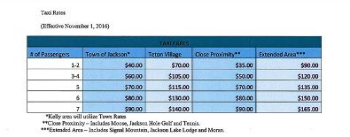 Transportation Prices have changed for Jackson Hole Area starting 1st of november 2016.